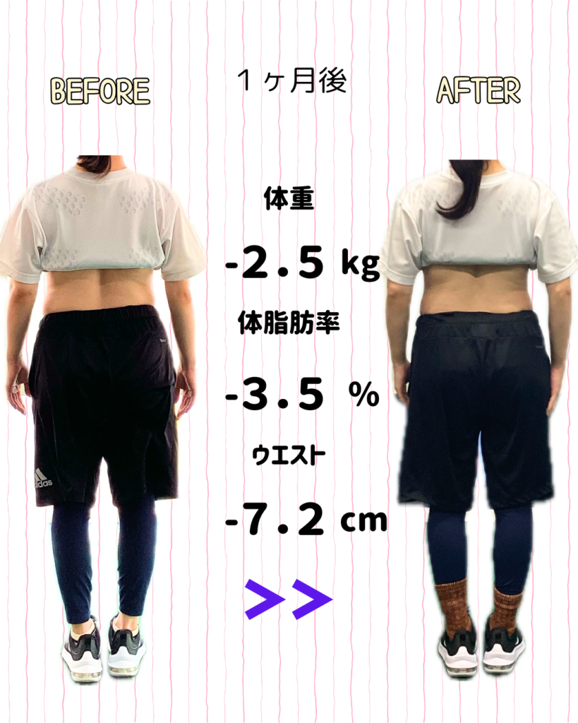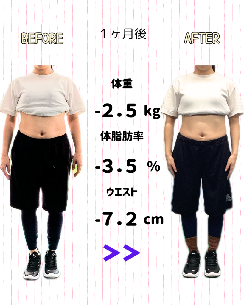 産後太りが気になり、ダイエットのためパーソナルトレーニングを実施して頂いているこちらのお客様。