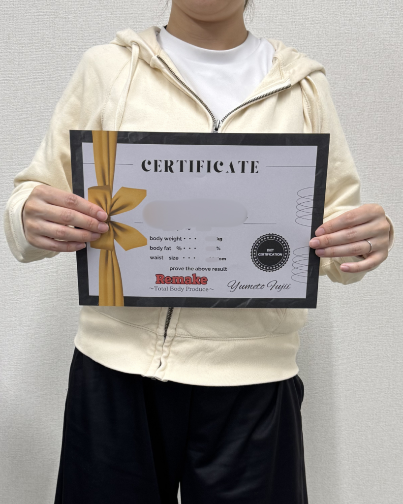 産後太りが気になり、ダイエットのため、今回Remakeのダイエットモニターにご参加頂いたこちらのお客様。