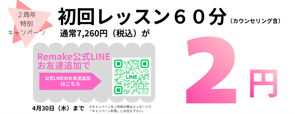 ※キャンペーンの適用は初回の方、またはRemakeのご利用が6ヶ月以上空いた方のみとなります。